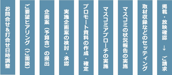 ・ プロモーション資料作成からマスコミへのアプローチ、取材や収録の調整まで実施します。
